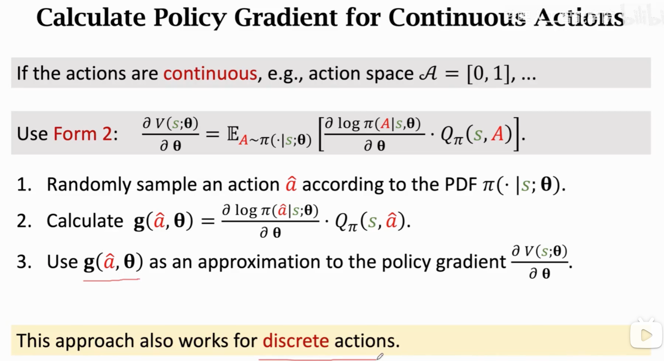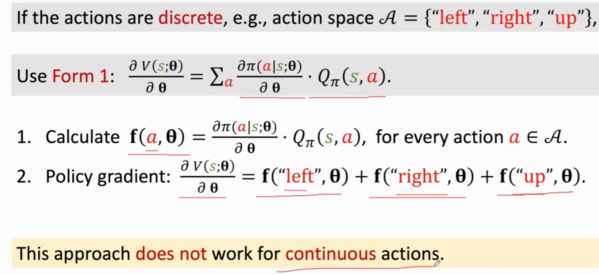 上面提到的方法都没有讨论过如何处理连续动作的问题。例如一个机械臂的转动角度,是一个多维的向量(每个关节有一个角度实数)。前面的方法value leaning通过估计特定动作的价值选择最佳动作,而policy输出的是不同动作概率(是一种随机policy),这都需要动作空间是离散的。对于连续动作需要有特殊的处理。