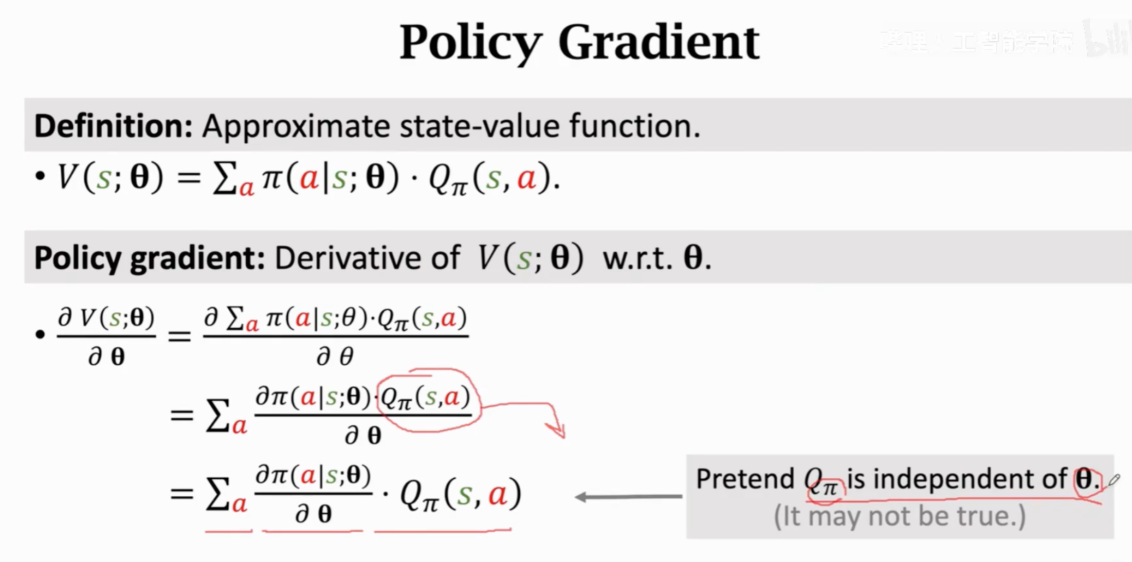 actor-critic方法是同时使用价值学习与策略学习的方法,目的就是为了估计state value function,然后优化policy: