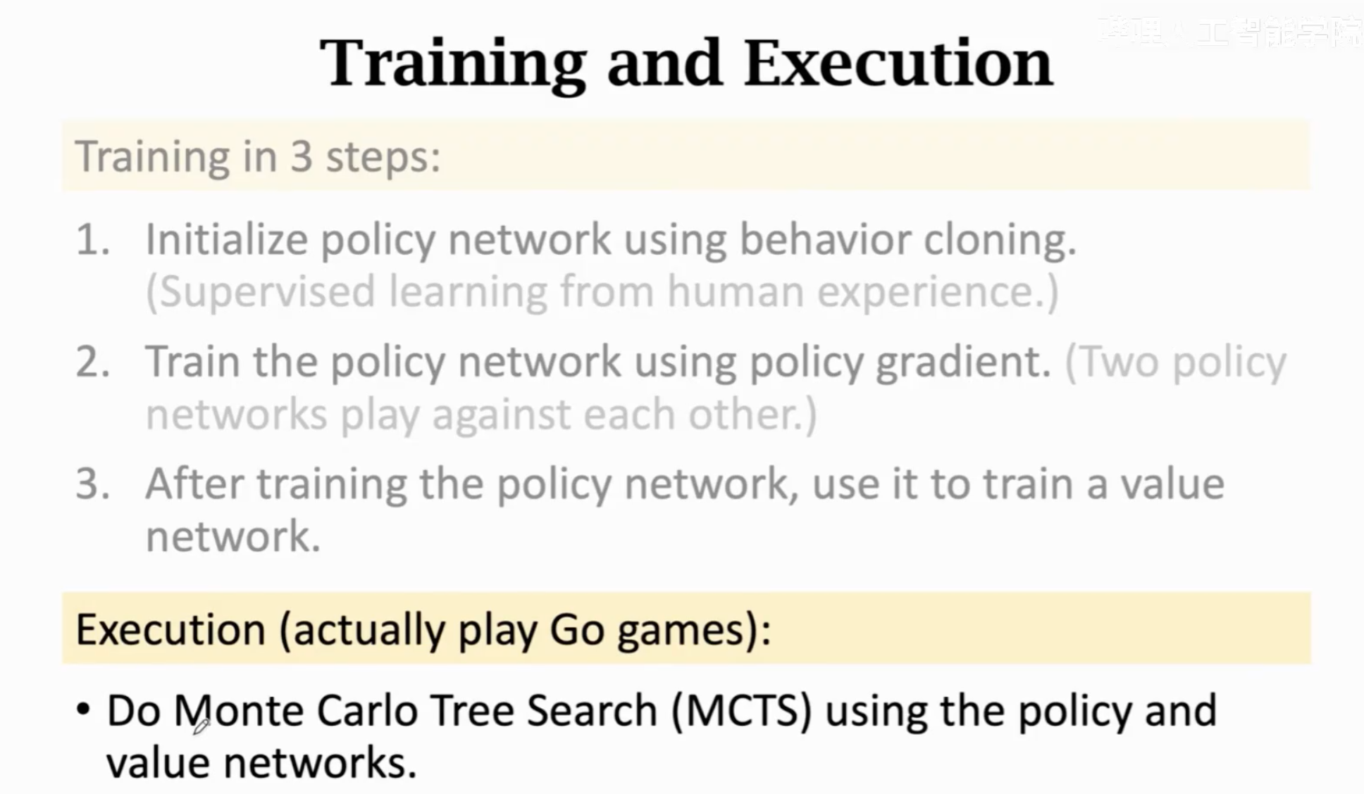 蒙特卡洛树搜索有四步,每一步在有policy和value network的帮助下能够更有效率的执行: