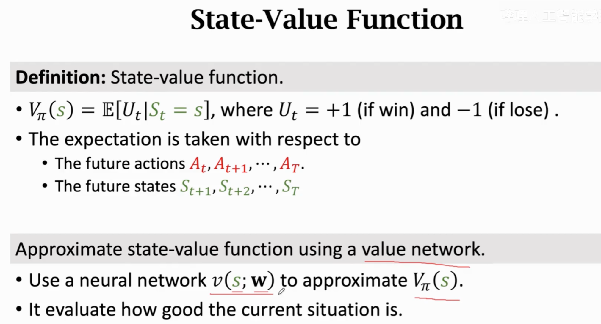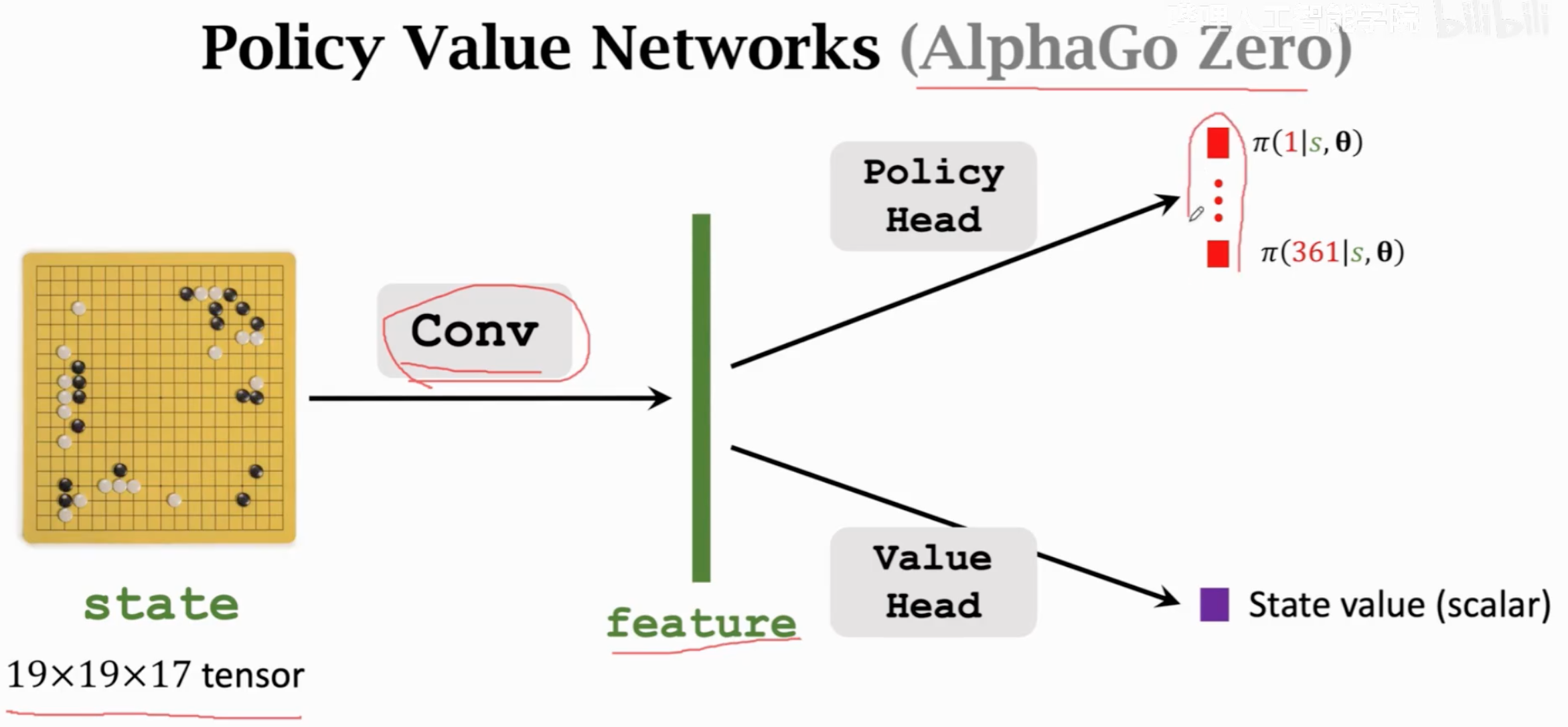 红色框是在没有采取动作\(a_t\)之前的状态价值估计,代表当前局势\(s_{t}\)的好坏。