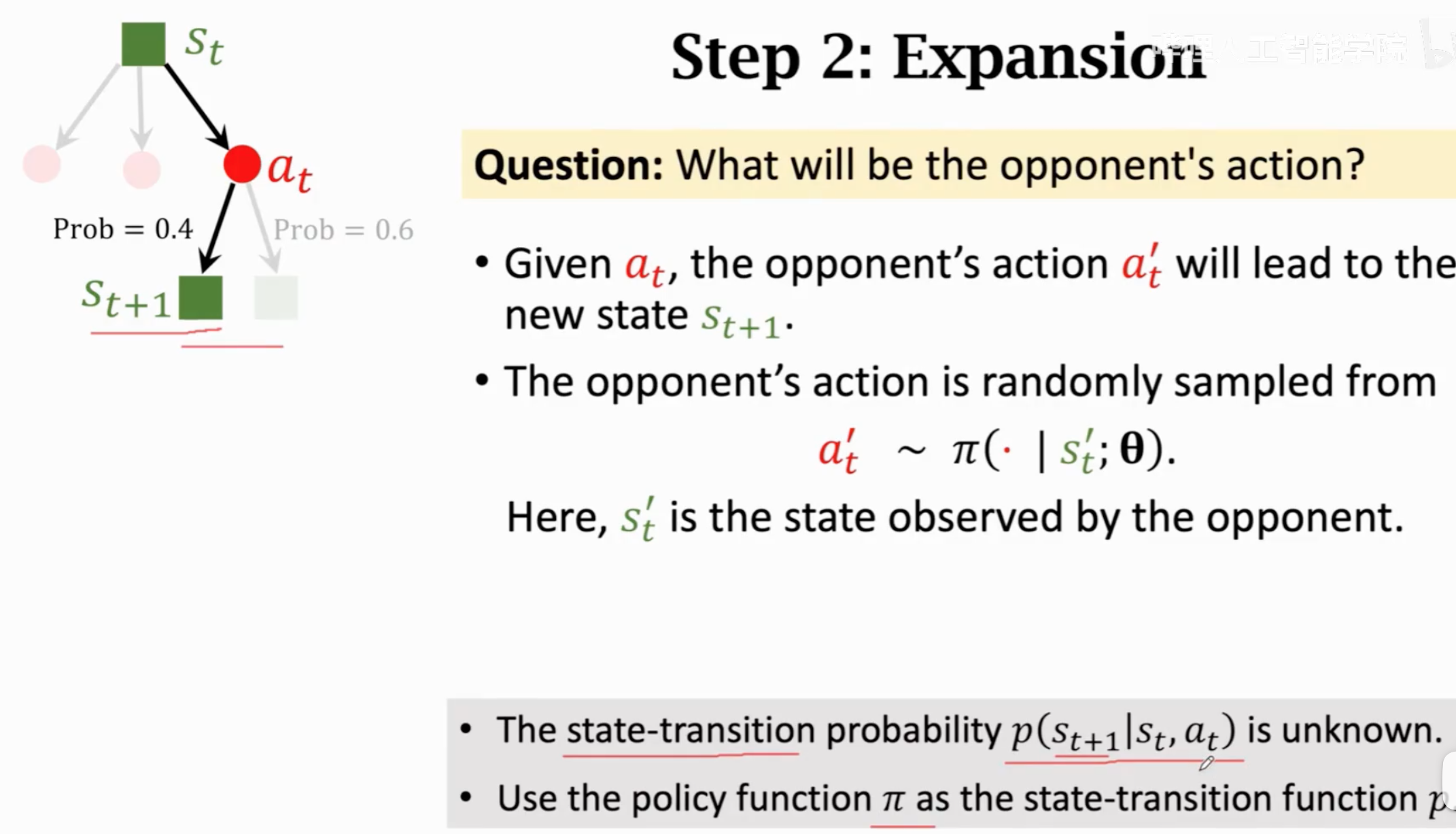 第二步是拓展,借助policy估计如果是对手的话,可能的落子是在哪里: