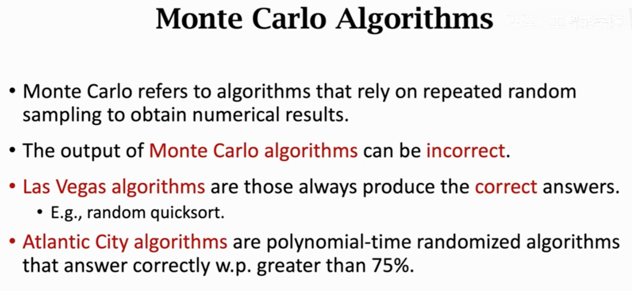 蒙特卡洛方法的结果总是错误的,但是它能够非常接近真实值。这在机器学习内就已经足够用了。除了蒙特卡洛方法还有很多随机算法,他们往往都喜欢用赌场来命名: